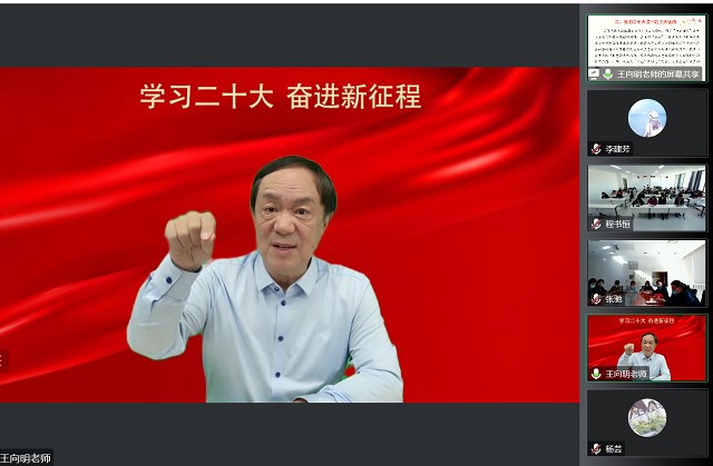 王向明以“自信自强 守正创新——深入学习领会党的二十大精神”为题作报告,从三个方面带领与会党员深入学习了党的二十大精神。一是从党的二十大主题入手,着重分析了“守正创新”的内在机理,并从中国共产党发展史、中华民族发展史、世界文明发展史三个维度深入浅出地阐释了党的二十大的重大意义;二是立足“守正”,结合实际,逐一分析了党的二十大提出的六个“必须坚持”;三是立足“创新”,在把握报告整体逻辑的基础上剖析党的二十大提出的一系列新观点、新论断、新举措。王向明指出,沿着“五个必由之路”,全国人民踔厉奋发,勇毅前行,中华民族伟大复兴的光荣与梦想终将成为现实。
