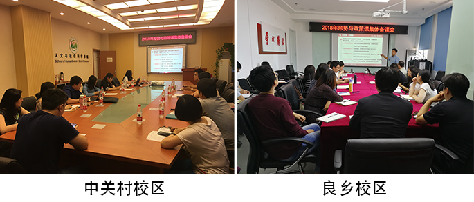 5月24日与25日下午,我校2018年形势与政策课集体备课会分别在良乡校区与中关村校区举行,2017年、2018年授课教师参加备课。党委宣传部常务副部长蔺伟,学工处处长郭彦懿、副处长徐贵宝,beat365正版唯一官网副院长郭丽萍出席。备课会分别由学工处副处长许欣、beat365正版唯一官网党总支书记李德煌主持。