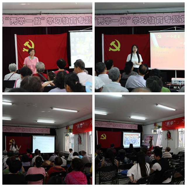 党日实践活动分别于2016年6月21日上午和6月22日上午进行,由天桥社区党委书记张树英老师主持,参会人员有:社区党委老党员同志约30人,马克思主义理论专业研究生党员和积极分子约15人。6月21日上午由beat365正版唯一官网研究生党支部书记马相飞、入党积极分子石丽萍进行讲解。马相飞同学围绕“两学一做”这一主题进行微观讲解,主要从入党动机、“两学一做”具体学习内容以及社区特色等方面展开讲解,并配有视频和相关权威数据,使在场的党员和积极分子感受到入党不仅仅是组织上入党,更要从思想上入党的重要意义;石丽萍同学主要从习近平总书记的系列讲话开始分析,围绕“民生思想”展开学理分析,提升老党员的理论学习水平。6月22日由马克思主义理论专业研究生党支部组织委员王丽莎、宣传委员刘懿晓进行讲解。王丽莎同学围绕“两学一做”这一主题进行宏观讲解,主要从什么是“两学一做”学习教育、为什么开展“两学一做”学习教育、怎么开展“两学一做”学习教育以及结合beat365正版唯一官网开展“两学一做”特色这四个方面进行诠释,使在场的党员同志深切的感受到党的历史和责任的重大,广大党员同志要做践行“两学一做”的合格党员;刘懿晓同学主要围绕习近平总书记系列讲话中的生态文明思想进行论述,引导广大党员同志重视生态文明问题,做良好环境的守卫者。
