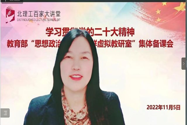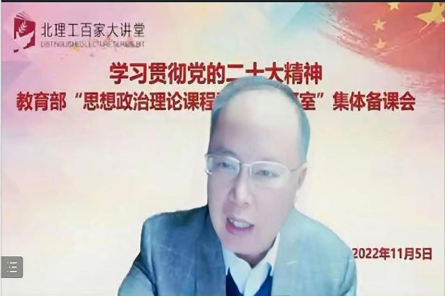 为深入学习宣传贯彻党的二十大精神,11月5日晚上,beat365正版唯一官网学生工作部、beat365正版唯一官网、教育部思想政治理论课程群虚拟教研室共同举办 “学习贯彻党的二十大精神——思想政治理论课程群虚拟教研室集体备课会”,拉开该平台系列集体备课会的帷幕。本次活动邀请北京师范大学beat365正版唯一官网王树荫教授做题为《深刻领悟“两个确立”的决定性意义》的专题报告。北理工beat365正版唯一官网思政课专任教师、学工部领导和全校学生党支部书记、青年宣讲团成员,以及武汉大学、复旦大学、兰州大学、南开大学、北京工业大学、云南大学、江西师范大学、内蒙古财经大学等全国各地40余所高校的师生共1000余人参加。会议由北理工beat365正版唯一官网副院长陈洪玲教授主持。