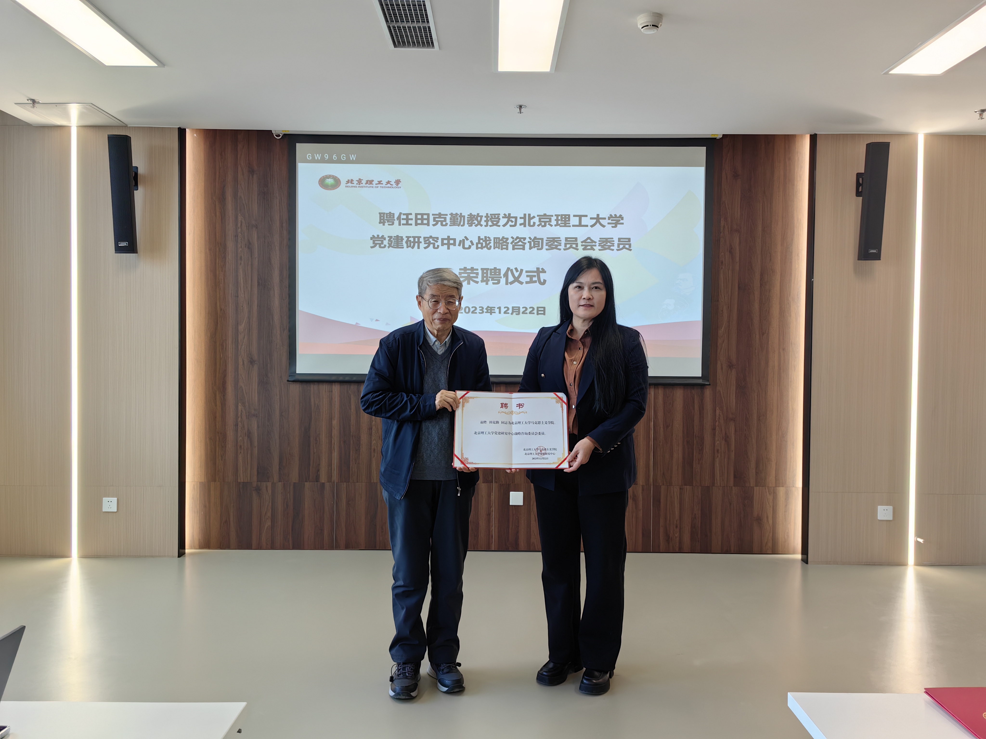 讲坛开始前,首先举办了党建研究中心荣聘仪式,聘任田克勤教授为beat365正版唯一官网党建研究中心战略咨询委员会委员、聘任李婧教授为beat365正版唯一官网党建研究中心兼职研究员,由陈洪玲向两位教授颁发聘任证书。