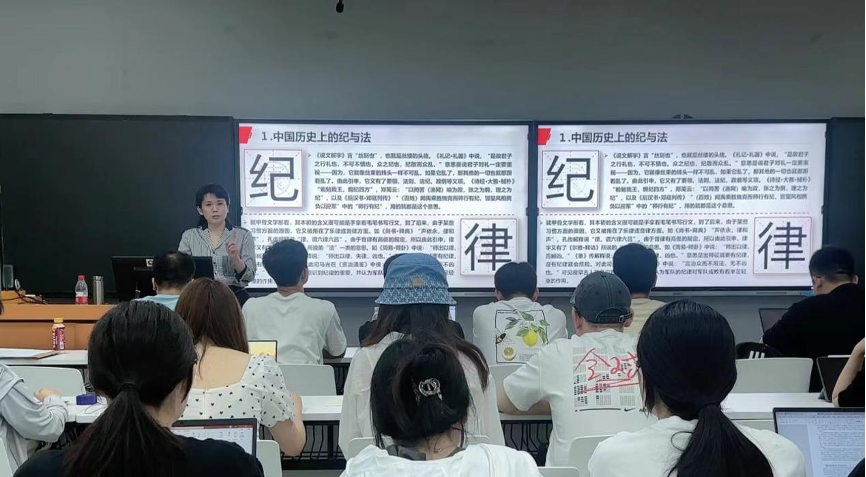 张舰月以《党纪学习教育的历史回溯与现实思鉴》为题,从中国历史上的纪与法引入,结合重要节点、重要事例,阐述了中国共产党纪律建设的百年探索及历史经验。结合警示案例,以案促学,深入解读了《中国共产党纪律处分条例》修订的历史沿革以及意义,引导学生要坚定理想信念,坚守责任担当,增强纪律意识,筑牢思想防线。