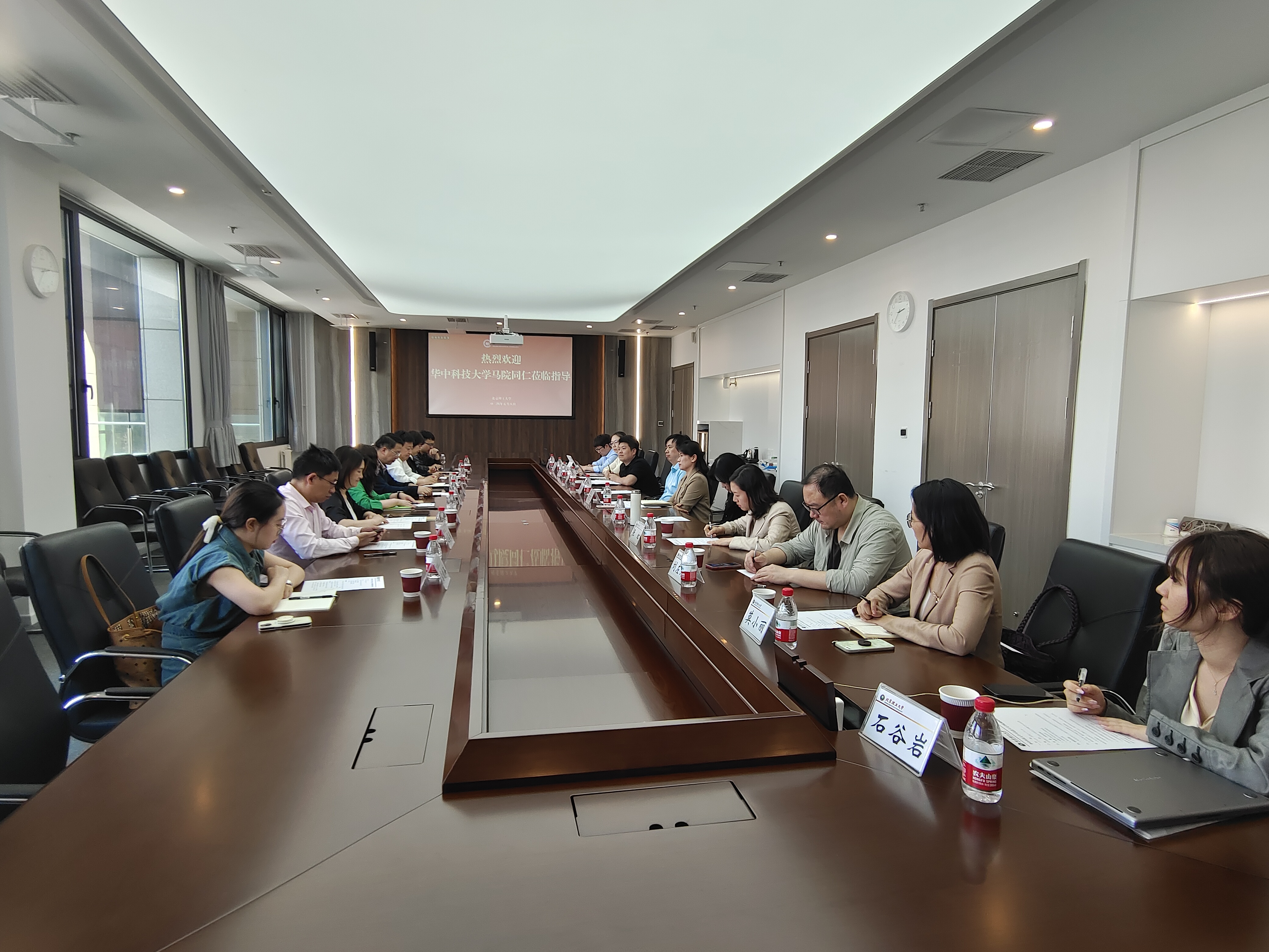 5月8日下午,华中科技大学beat365正版唯一官网党委书记刘雅然、院长岳奎一行8人来我院调研,beat365正版唯一官网院长刘新刚,党委书记张舰月,党委副书记、副院长刘宇,副院长陈洪玲和相关教师代表参加此次座谈会,会议由刘宇主持。
