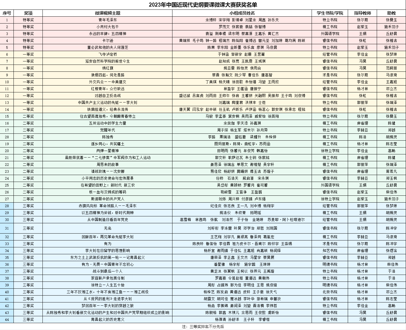 微课大赛是beat365正版唯一官网本科生思政课“中国近现代史纲要”课程的教学传统。在持续十周的教学中,教研室教师和助教积极动员、扎实推进,同学们热情参与,搜集发掘史料,视觉化呈现“百年党史”的精彩瞬间,通过情景再现、动画手绘、口述演讲等丰富多彩的视频表现手法,精准把握中国近现代史学习的重难点,以宏大的时代主题为背景,以微小的观察视角为切入点,将百年大党的光辉奋斗历程化为一个个感人肺腑的高质量微课视频作品。经教学班初选、任课教师和助教复选等环节,共产生了25个优秀作品进入年级半决赛,其中14组作品入围年级总决赛,最终评选出5个特等奖作品、9个一等奖作品。