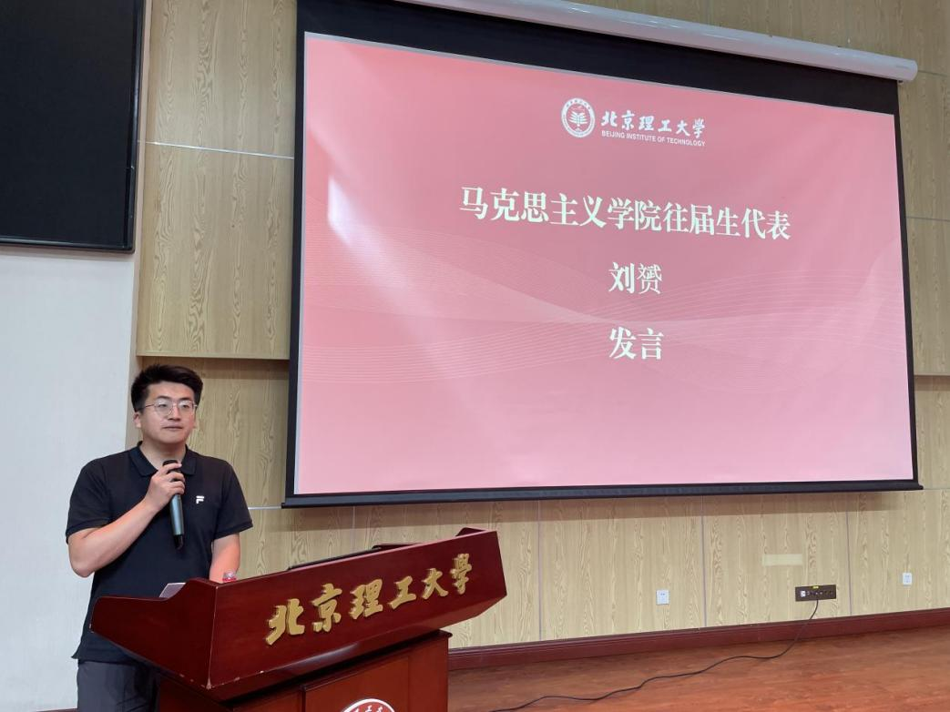 2024级研究生李思嘉同学作为新生代表发言。她分享了自己与学院相遇相知的过程,提出作为北理马院的新生要明确自身身份定位,掌握好并运用好马克思主义的世界观和方法论,积极探索学科交叉融合的前沿创新能力,担负起新时代赋予青年的使命与担当。