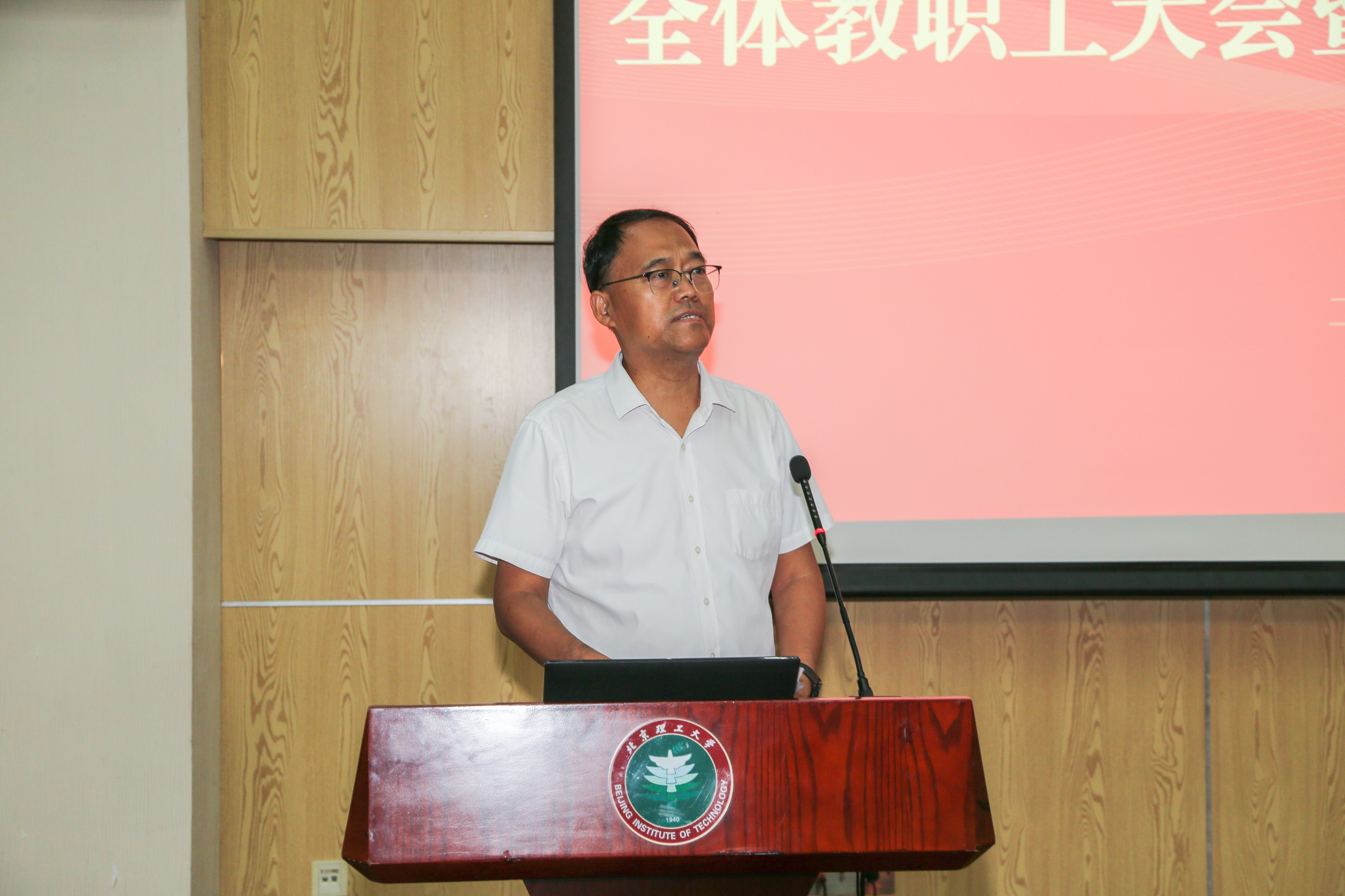 9月4日下午,beat365正版唯一官网在良乡校区综合教学楼演艺厅召开全体教职工大会,学校党委副书记包丽颖出席会议。会议由党委副书记、副院长刘宇主持。