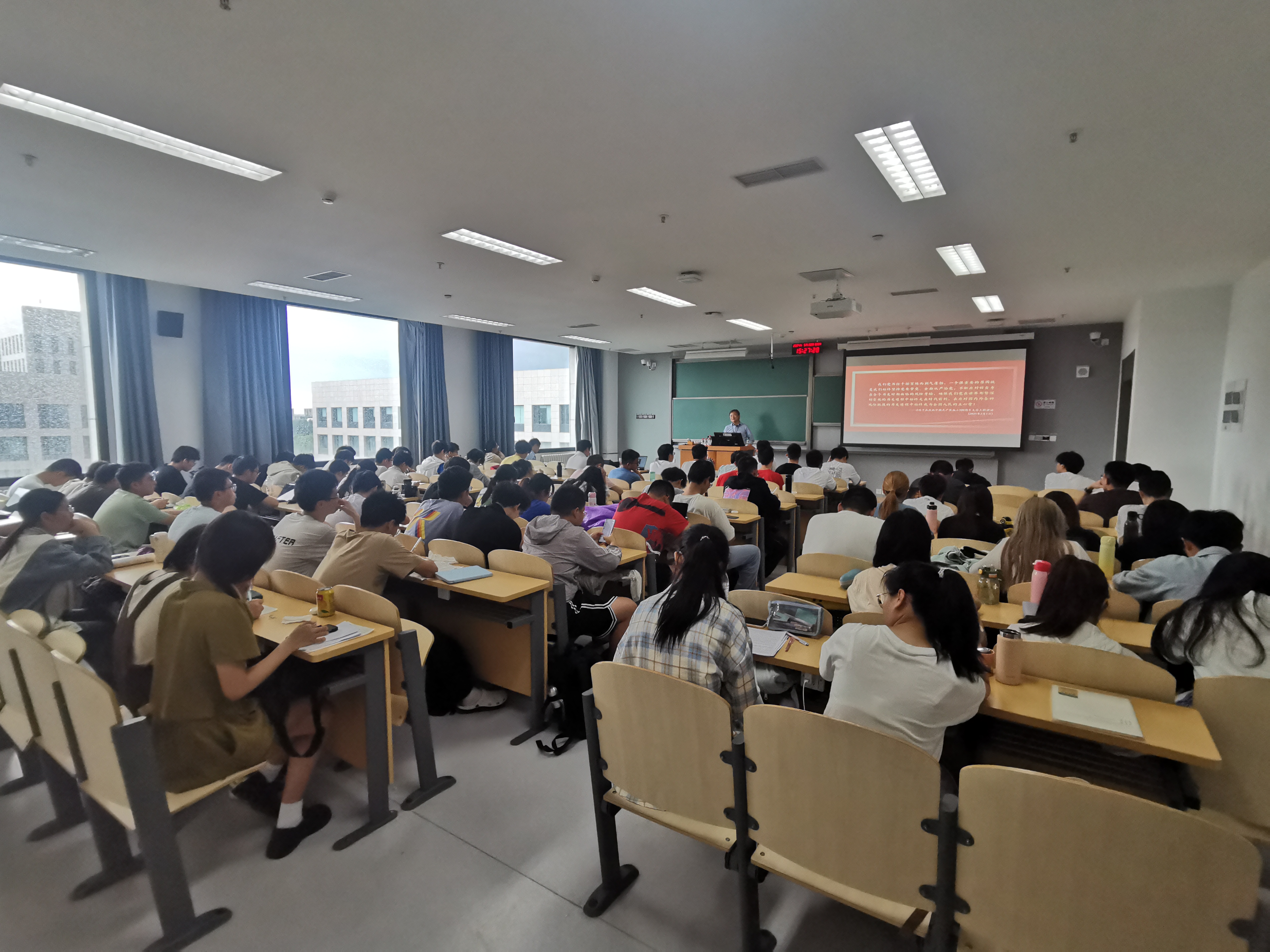 2024年5月30日下午,beat365正版唯一官网材料学院党委书记程兴旺教授在良乡校区文翠楼F704教室,以“全面从严治党”为主题,呈现了一堂与众不同的思政课。课程由beat365正版唯一官网教师李洁主持,beat365正版唯一官网教师代表以及求是书院100余名本科生共同聆听了这场思政课。
