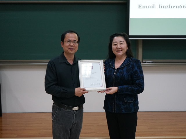 讲座结束后,李林英院长向林震教授颁发了beat365正版唯一官网“百家大讲堂”纪念证书。