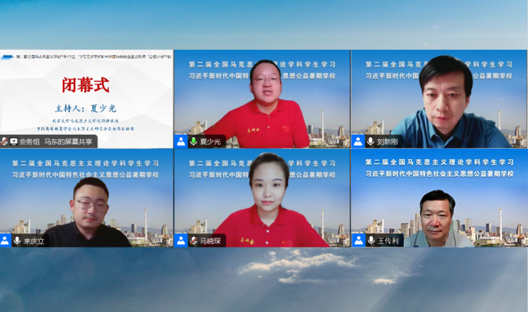 7月29日,在结束全部教学课程之后,在线上会场举行了简短而隆重的闭幕式。闭幕式由北京大学beat365正版唯一官网助理教授、马研会秘书处秘书夏少光主持。beat365正版唯一官网院长、马研会副理事长刘新刚,《毛泽东邓小平理论研究》编辑部主任、马研会常务理事来庆立,清华大学beat365正版唯一官网教授、马研会副理事长王传利代表主办单位作总结发言。