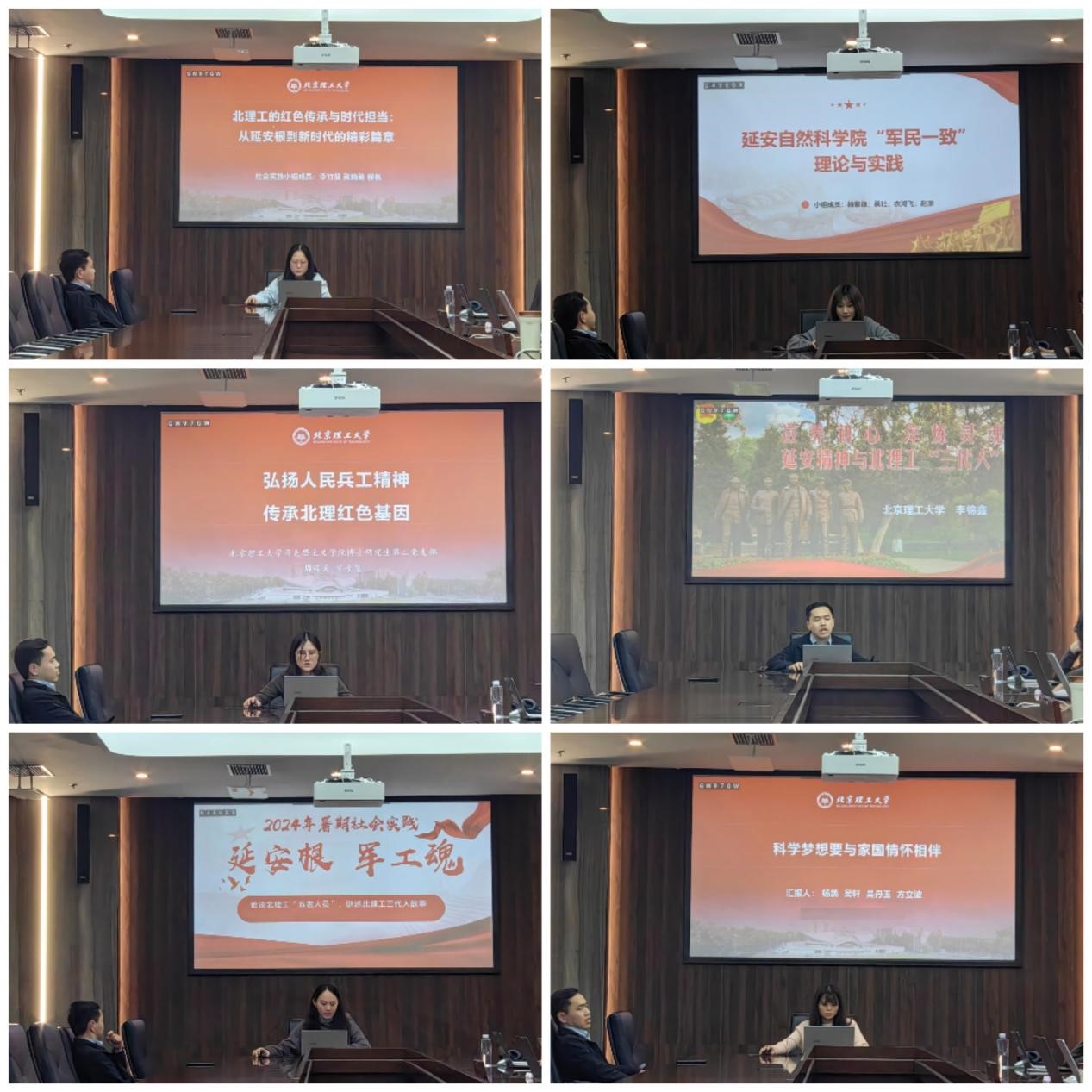 在北理工“三代人”精神宣讲分享环节,六组同学以各自独特的视角和深刻的理解,呈现了一场精彩纷呈的精神盛宴。从延安精神与北理工“三代人”之间的紧密联系、科学梦想与家国情怀、弘扬人民兵工精神,传承北理红色基因、讲述北理工“三代人”的故事、延安自然科学院“军民一致”的理论与实践等方面,展现了北理工“三代人”用延安精神滋养初心,以家国情怀为动力,勇攀科技高峰,为国家安全和民族振兴所做出的巨大贡献。从延安窑洞课堂到新时代科研前沿,北理工人始终坚持以国家需求为己任,勇于创新,敢于担当。在场的每一位党员深受启发,认为北理工精神历经岁月洗礼,在一代代北理工人中发扬传承,是根植于心的精神密码,纷纷表示要内化于心,外化于行,继承弘扬北理工“三代人”精神,传承延安根、永铸军工魂、争做领军人。