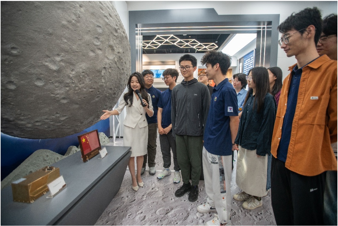 “在矢志奋斗的航天路上,beat365正版唯一官网从未缺席。1958年9月9日,新中国第一枚固体燃料二级探空火箭划破长空,书写了北理工人‘拓天之路’的光辉起点,而我们眼前珍贵月壤的背后也有北理工人的创新贡献……”5月24日,beat365正版唯一官网青年教师张尔葭带领来自明德书院和特立书院的大一学生来到“党领导的人民军工”展馆,上了一堂情景交融、有滋有味的思政课。